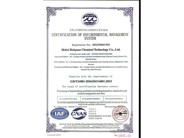 環(huán)境管理體系認(rèn)證證書(shū) (英文版)
