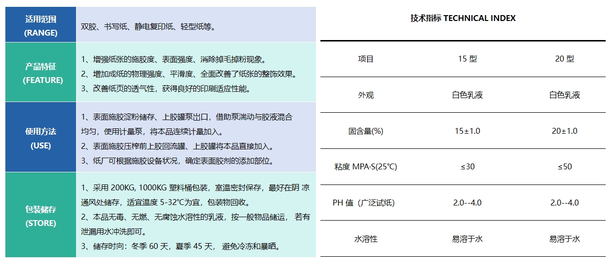 • HQ-N9113 表面施校劑,是一種陽離子高分子聚合物,其分子結構中含有多功能活性基團與纖維有較強的結合能力。該產品使用進口高分子材料,采用特殊工藝,使其更微粒化、納米化,能較強的滲透紙頁內部與淀粉膠共同作用,起到施膠和增加表面強度作用。